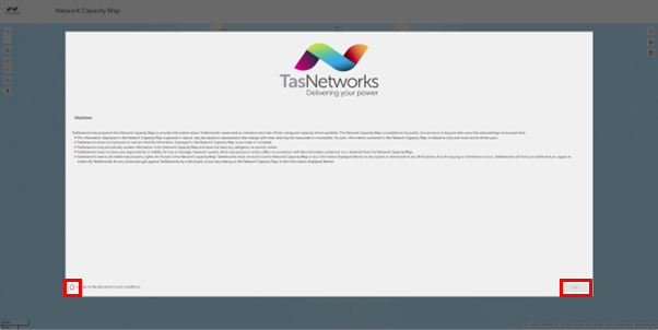 TasNetworks has prepared this Network Capacity Map to provide information about TasNetworks' assets and an indicative estimate of their rating and capacity where available. The Network Capacity Map is available to the public, but access to it requires that users first acknowledge and accept the disclaimer.
