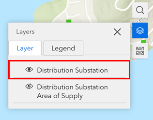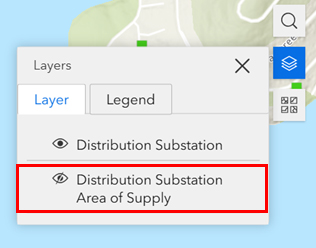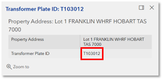 Clicking on one of the land parcels will produce a popup that shows the Distribution Substation which supplies the connection at that address: