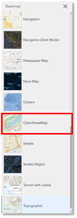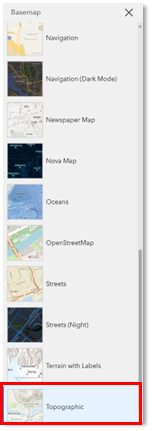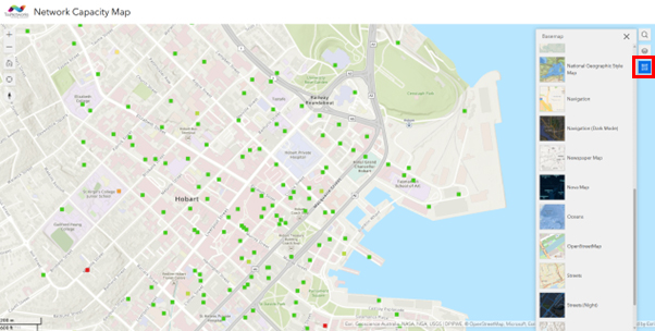Various basemaps can be added and viewed from the toolbar on the right of screen.