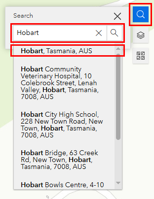 You can use the Search facility provided in the top right corner of the map to enter and search for a town or an address.