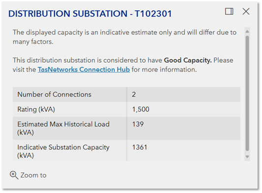 Indicative Substation Capacity: The estimated indicative remaining capacity at this Distribution Substation.